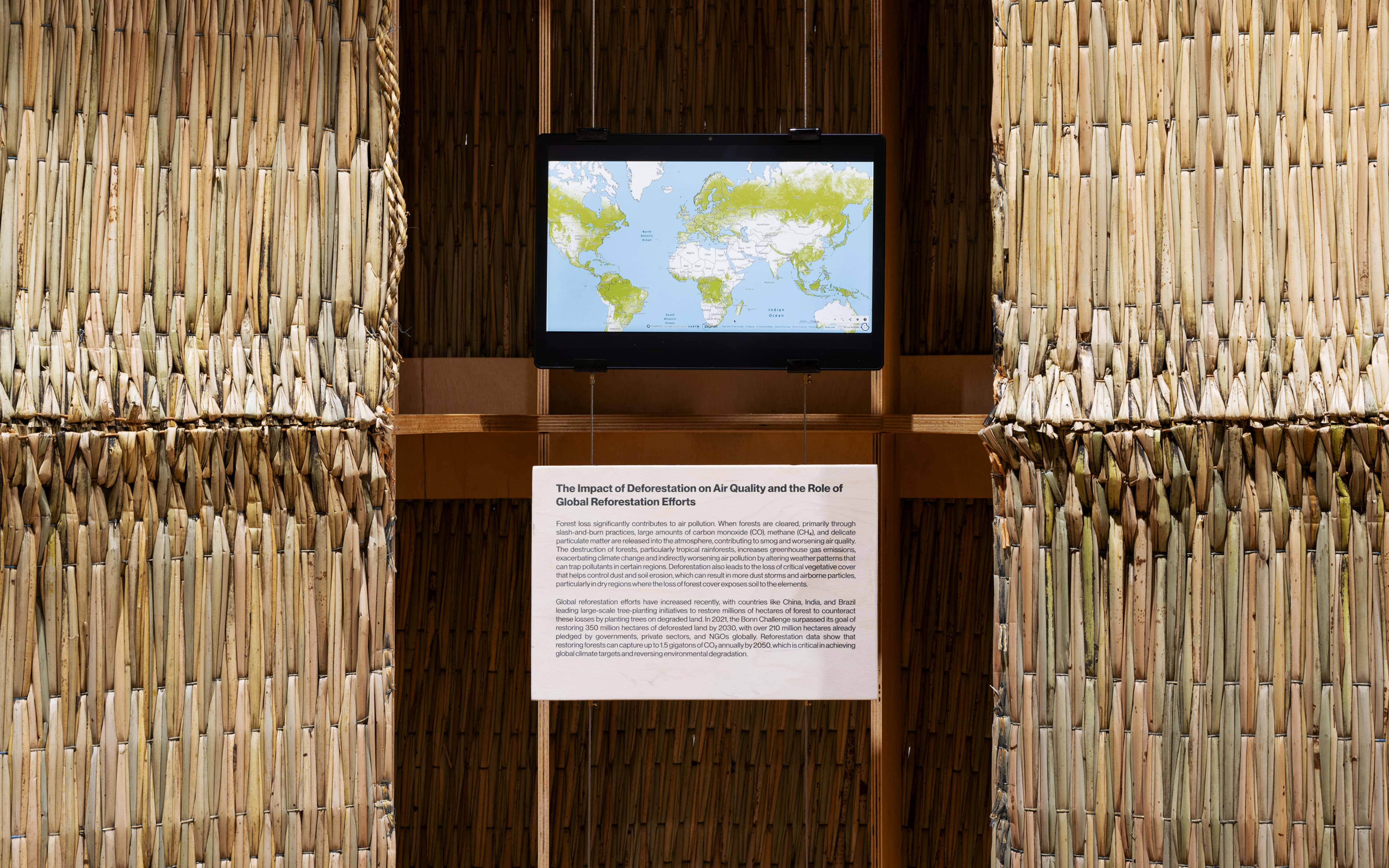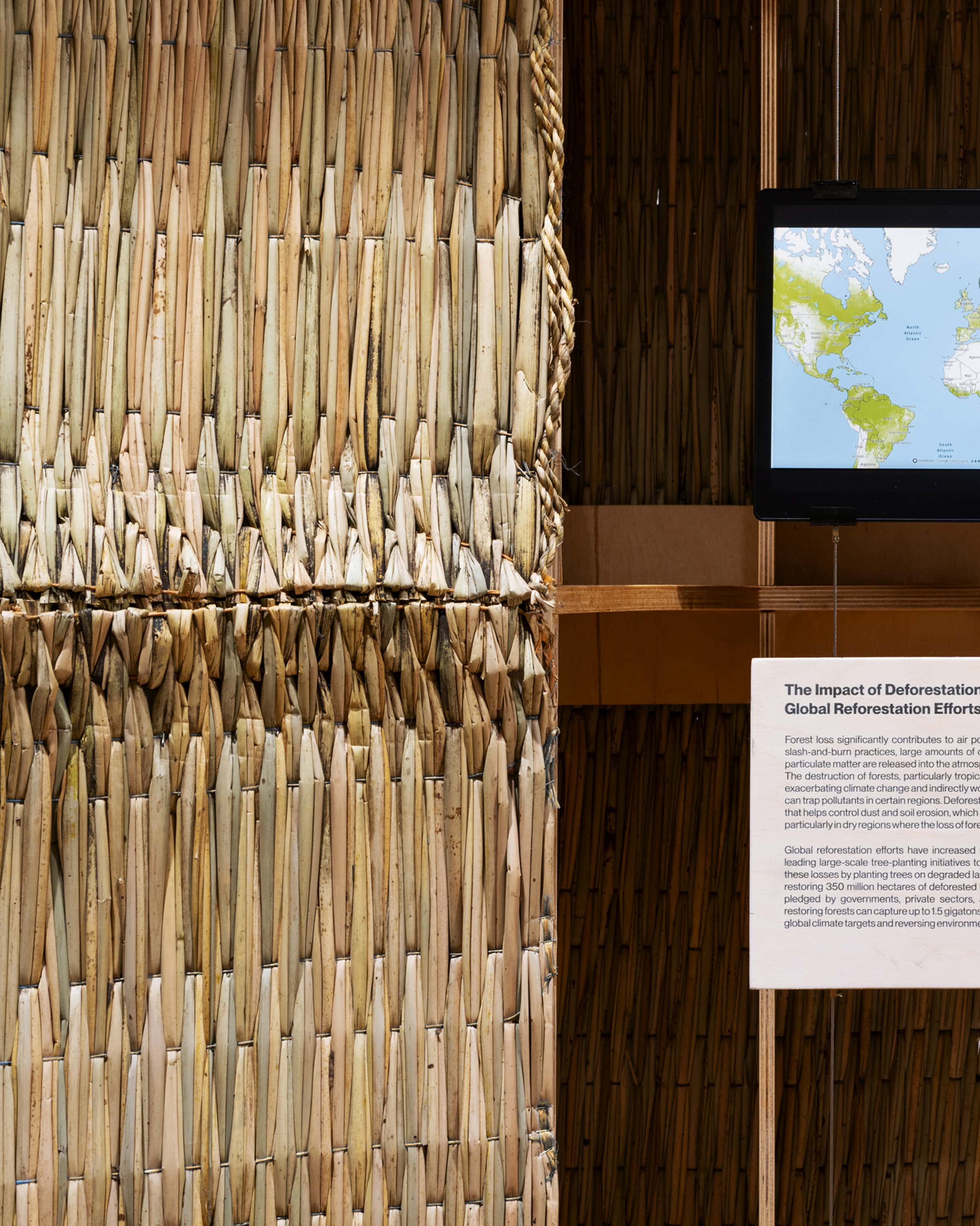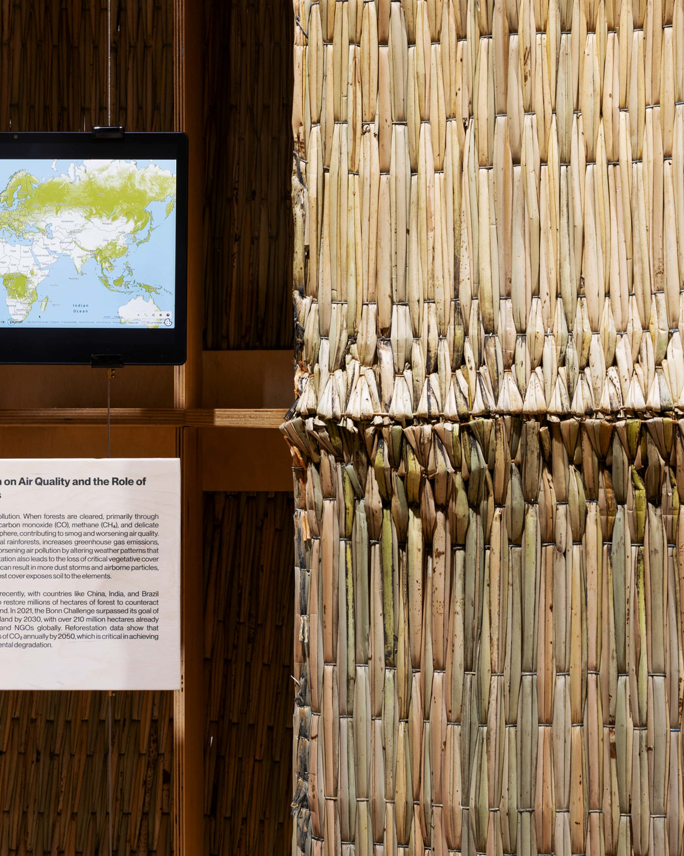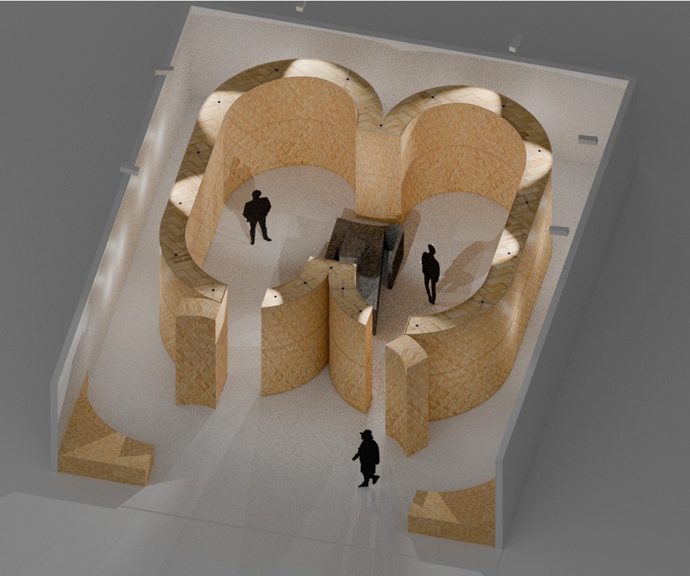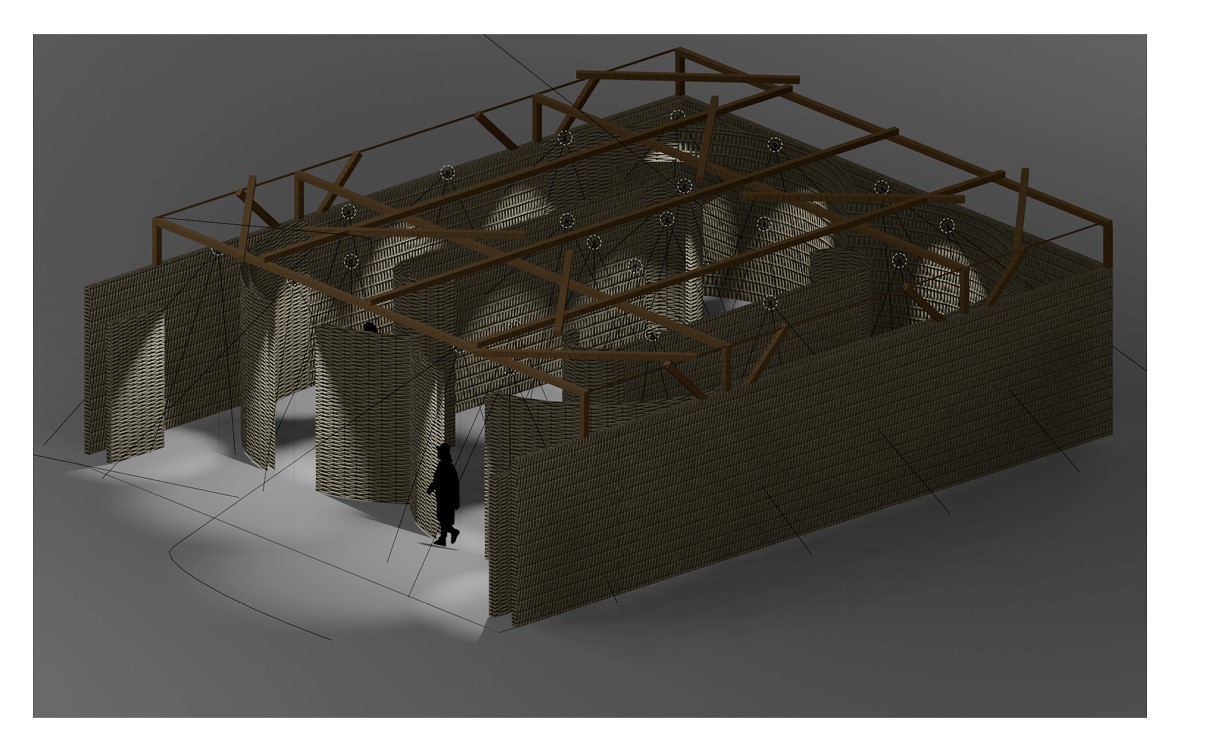 Remote work for SKNYPL SKNYPL was commissioned by the IDEA campaign to design a pavilion and exhibition for 2024 United Nations Climate Change Conference (COP 29), establishing a cohesive vision centered on two critical themes: air pollution and food waste. The scope of SKNYPL’s work was divided into two parts—initial research on the assigned subjects, followed by the architectural development of the pavilion. In developing the installation’s exterior, SKNYPL drew on Azerbaijan’s cultural heritage of reed weaving—a once-flourishing craft preserved by only a handful of communities, including the women of Musakucha village. By employing this traditional technique and using locally sourced materials, the design presents a model for sustainable architecture at international events. Assistance on concetp design, prototyping, render production and complete production by CNC and weaving craft. Remote work.