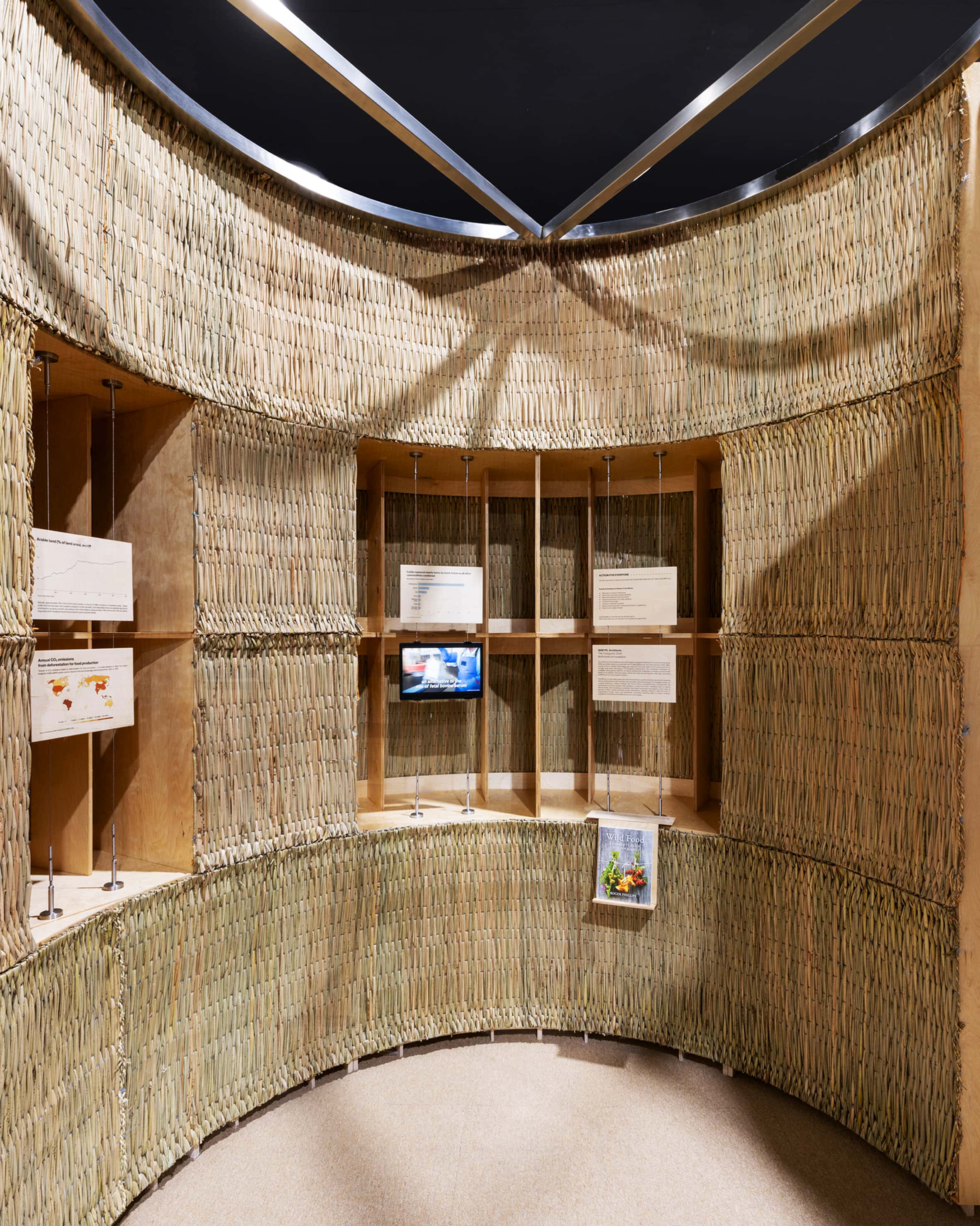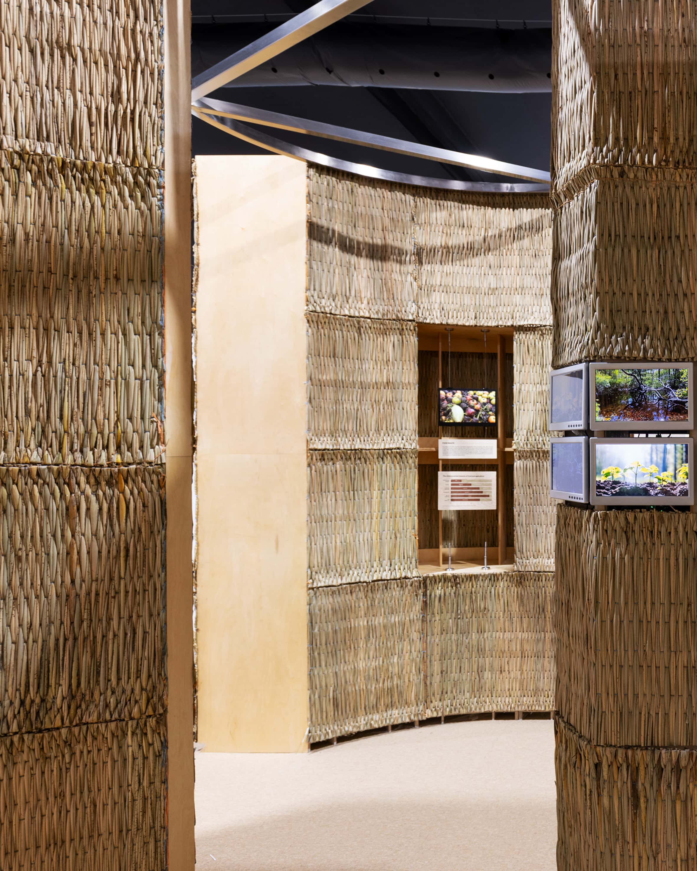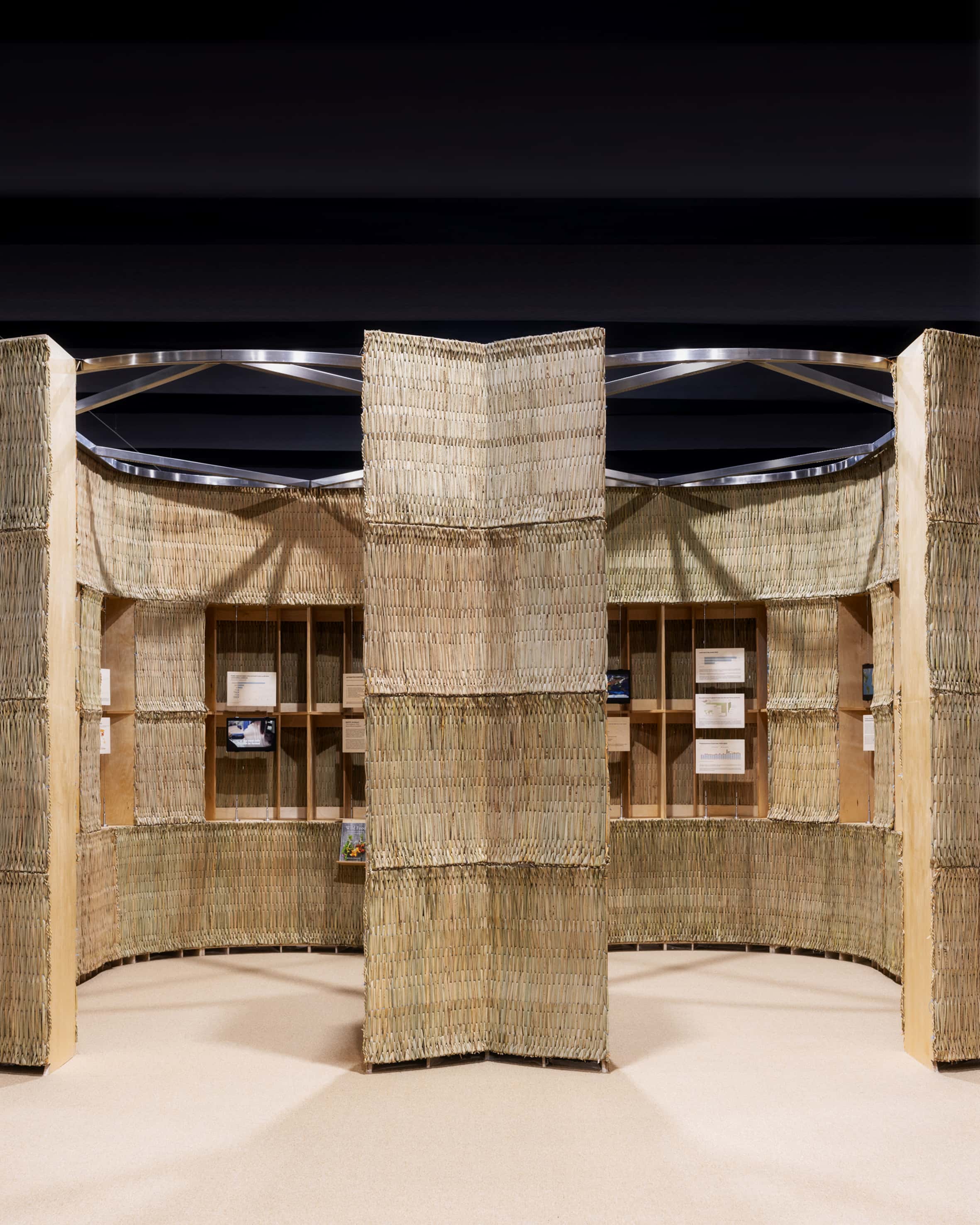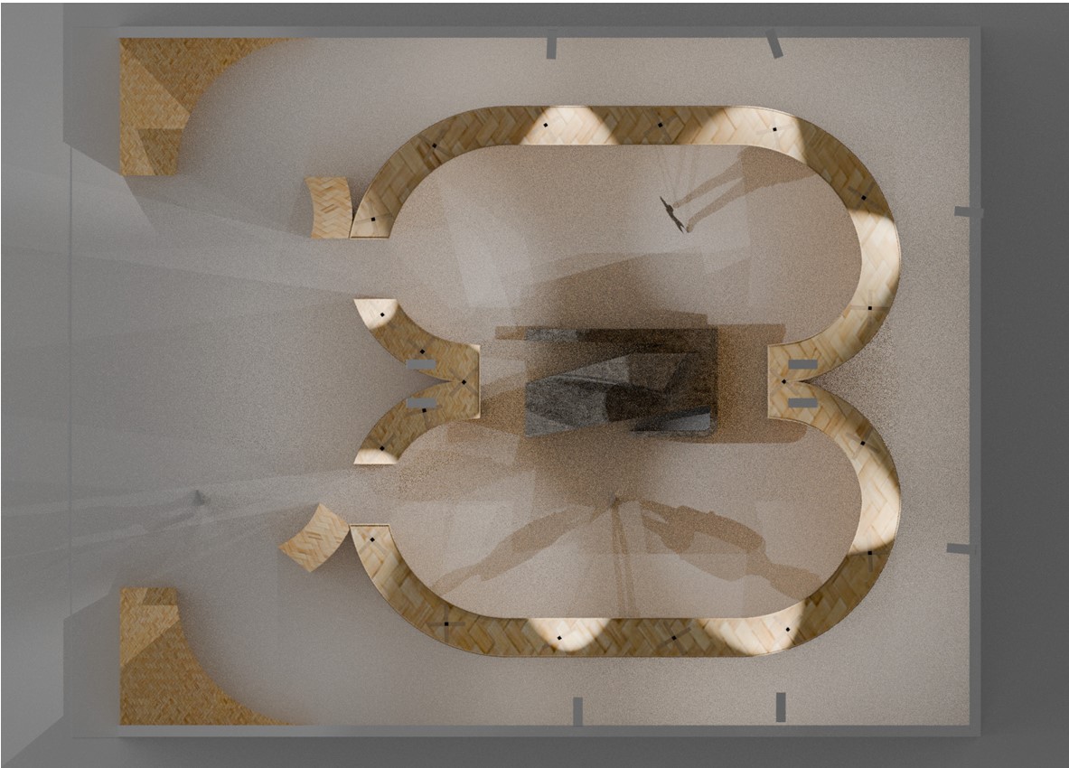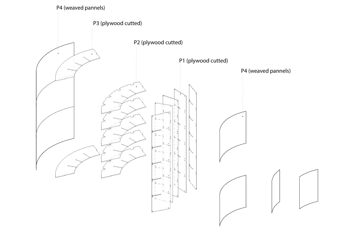 Remote work for SKNYPL SKNYPL was commissioned by the IDEA campaign to design a pavilion and exhibition for 2024 United Nations Climate Change Conference (COP 29), establishing a cohesive vision centered on two critical themes: air pollution and food waste. The scope of SKNYPL’s work was divided into two parts—initial research on the assigned subjects, followed by the architectural development of the pavilion. In developing the installation’s exterior, SKNYPL drew on Azerbaijan’s cultural heritage of reed weaving—a once-flourishing craft preserved by only a handful of communities, including the women of Musakucha village. By employing this traditional technique and using locally sourced materials, the design presents a model for sustainable architecture at international events. Assistance on concetp design, prototyping, render production and complete production by CNC and weaving craft. Remote work.